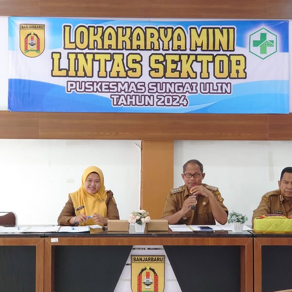 Kegiatan Lokakarya Mini Lintas Sektor oleh Puskesmas Sungai Ulin yang diadakan di aula Kecamatan Banjarbaru Utara.