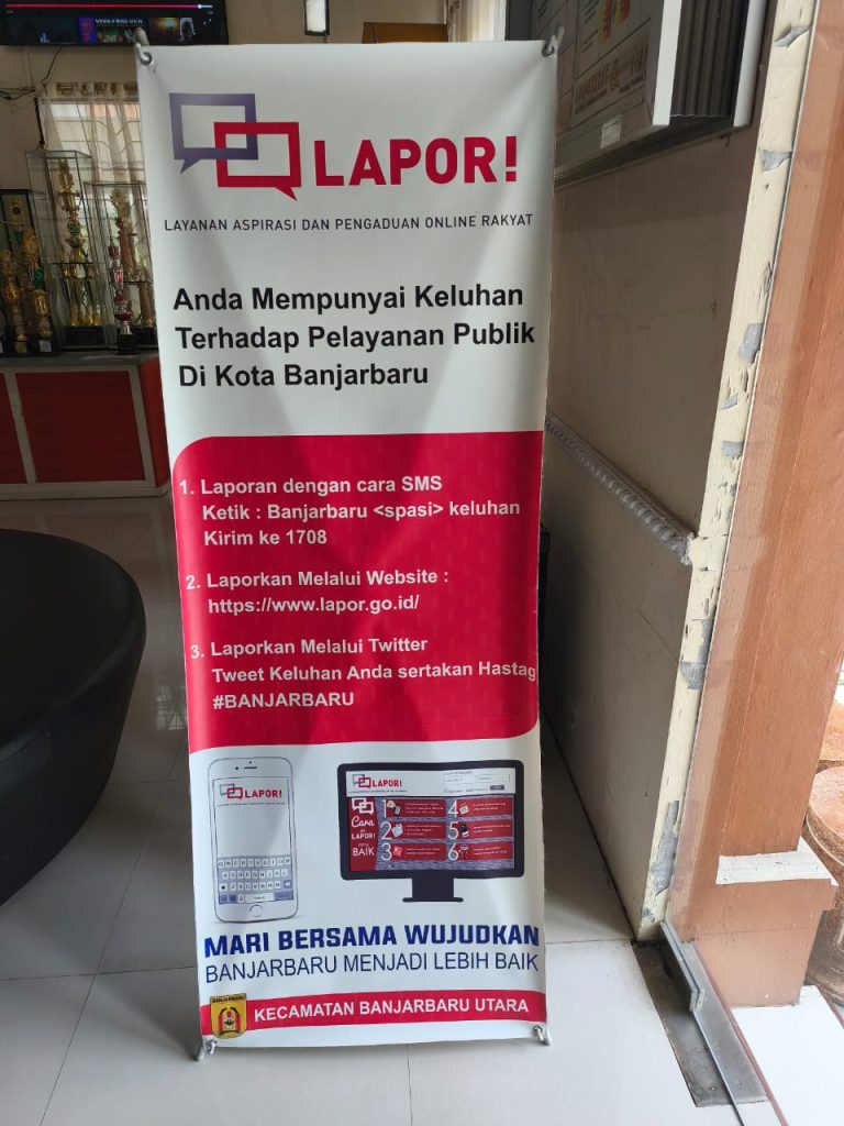 Aplikasi LAPOR!, yang dikelola oleh Kementerian Pendayagunaan Aparatur Negara dan Reformasi Birokrasi (KemenPAN-RB), kini bisa diakses langsung melalui halaman web Kecamatan Banjarbaru Utara. Masyarakat dapat menyampaikan laporan, keluhan, aspirasi, maupun saran terkait layanan publik secara cepat, mudah, dan langsung ditindaklanjuti oleh instansi terkait.
